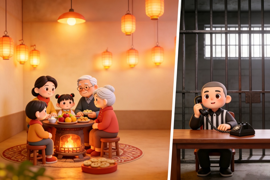 墙外是阖家围坐、朝夕相伴的温暖;墙内是跨越高墙的电波牵挂,一句平安,便是最真的祝福。