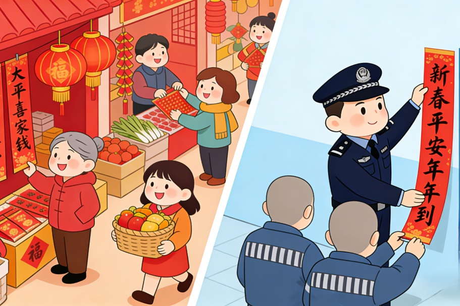 墙外是自由置办年货、装点家园的热闹;墙内是在民警组织下,规范有序、静心布置的新春氛围。规矩之中,亦是新生的开始。