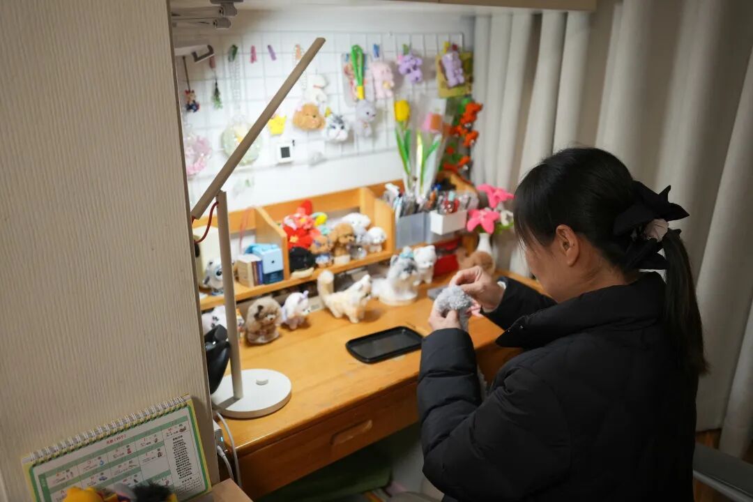 在嘉定南翔,有一张小小的工作台,每到夜晚便会亮起温暖的灯光。灯光下,一双灵巧的手正将五彩扭扭棒反复缠绕、精细塑形,不一会儿,一只灵动可爱的小狗便初具雏形。这双手的主人,是王一芳。白天,她是化妆品公司里严谨细致的质检员,一丝不苟地守护着每一件产品的品质与安全;夜晚,她化身手作达人,用一根根柔软的扭扭棒,为每只可爱的毛孩子定制专属形象。