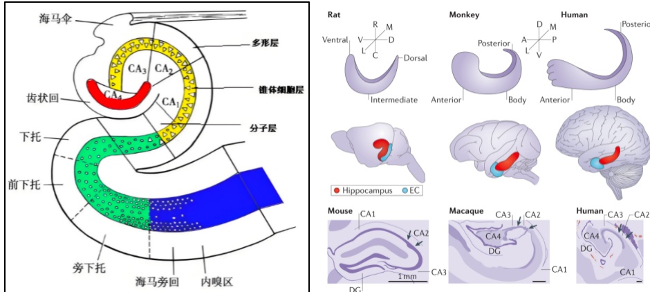 图1:大脑海马与动物海马对比图