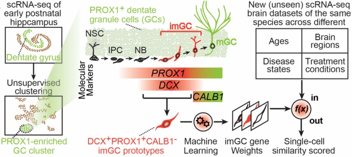图7:通过单细胞组学测序并建立机器学习模型进行深度数据挖掘,首次绘制了人类海马体成体新生神经元的分子图谱