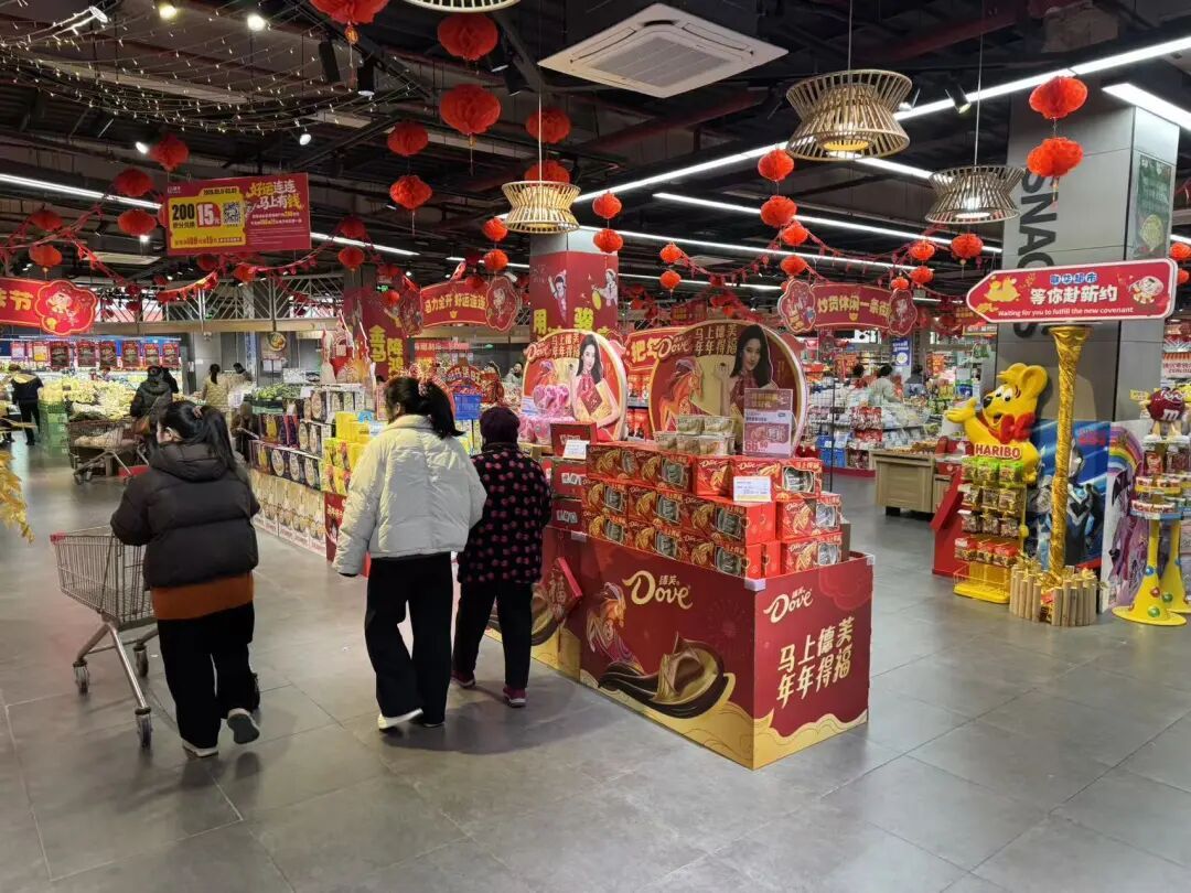 据了解,该超市春节期间人气爆棚,日均客流量由平时的1600人次飙升至3000人次。为适配消费高峰,超市调整了营业时间,年初一至初三每日8时至19时营业,年初四起提前至7时开门,延长至21时关门,最大限度方便市民采购。