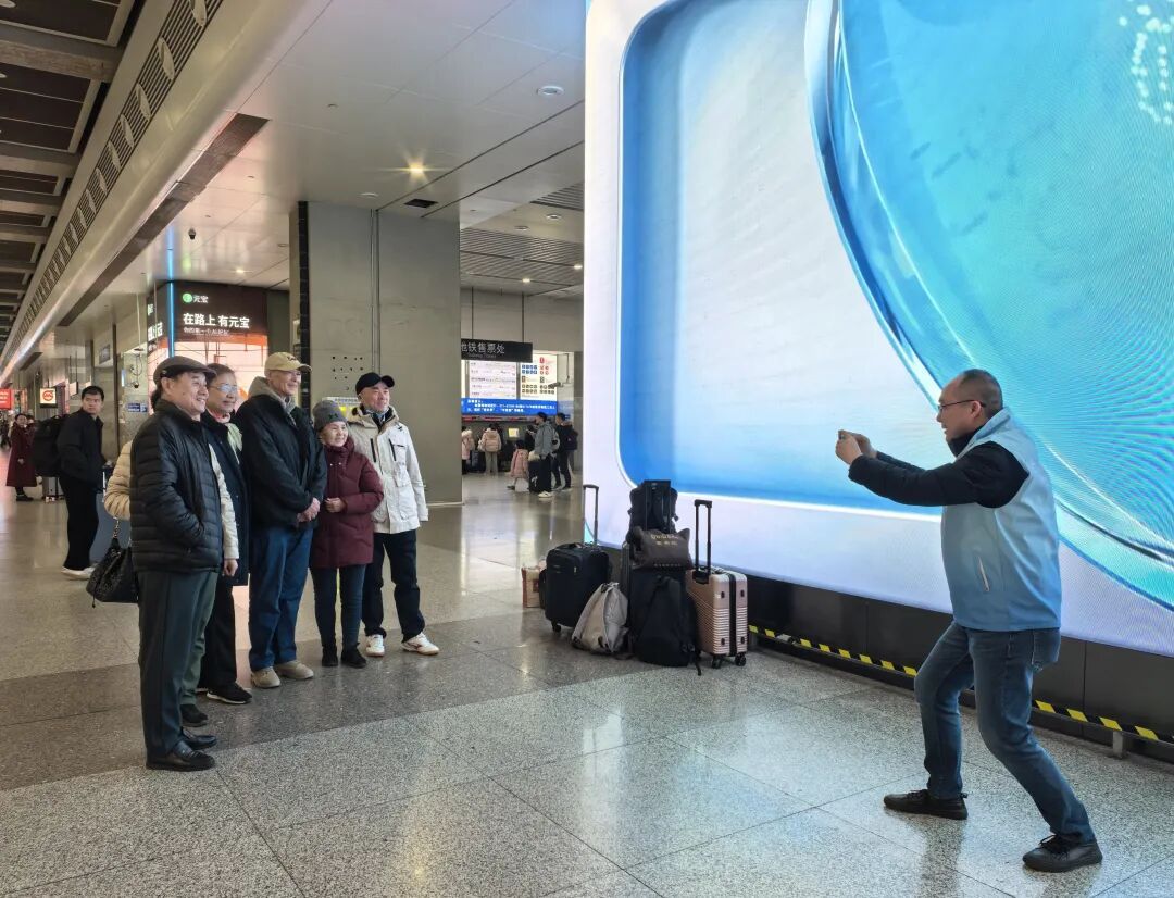面对一波又一波的问询,队员们始终面带微笑,耐心解答。大家不仅熟记了周边的引导图,更主动延伸服务。遇到拖着沉重行李的老人,他们主动上前搭把手;看到带着孩子手忙脚乱的年轻父母,他们帮忙引导至无障碍电梯。正如队员们在休息间隙打趣的那样:“咱们搞机关事务保障的,平时保障的是办公运转,今天保障的是春运畅通,道理是一样的,都得用心。”