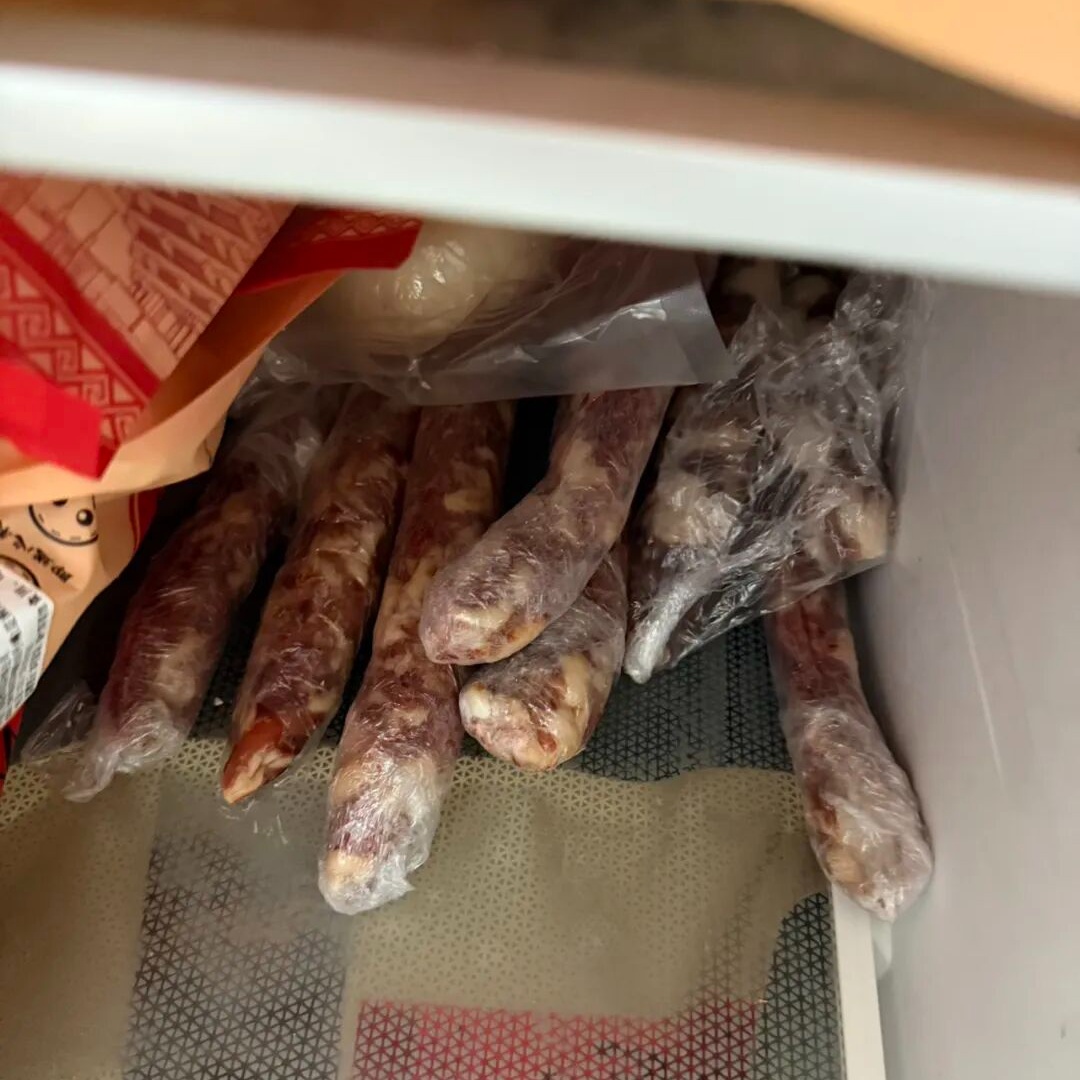 冰箱门打开的刹那,那抹熟悉的绛红便扑面而来,父母塞进行李箱的腊香肠,整整齐齐地码在冷藏室里。这些在川东丘陵的秋风里晾晒过的家乡味道,跨越1600公里,抵达张敏成在嘉定安亭租住的小厨房。