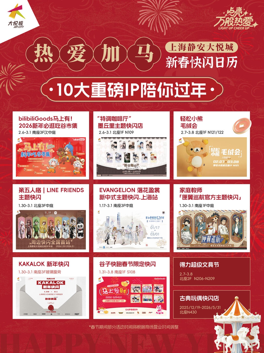 春节期间,“二次元圣地”静安大悦城齐聚10大人气IP快闪,开启好运加“马”新春狂欢,集互动游戏、丰厚好礼与视听盛宴于一体;
