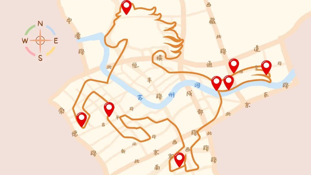 我们继续“画马”的脚步。这次,我们把静安苏河两岸当画布,用双脚当画笔,串联起8大宝藏“文旅商”地标,在地图上精准“画”出一匹奋蹄的骏马!