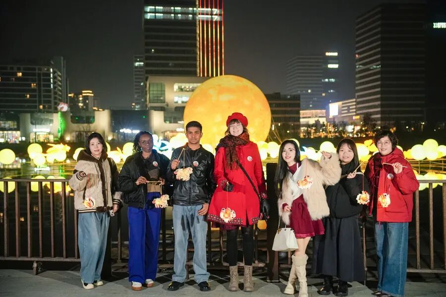 夜幕降临,体验官和摄影师们来到美兰西湖公园游览2026“烟火江南 文香罗店”暖春灯会。小红书博主“是四月吖”也是第一次来到罗店,她说:“这里有小桥流水、特色建筑,还有灿烂多彩的灯会,特别适合和朋友一起逛。”