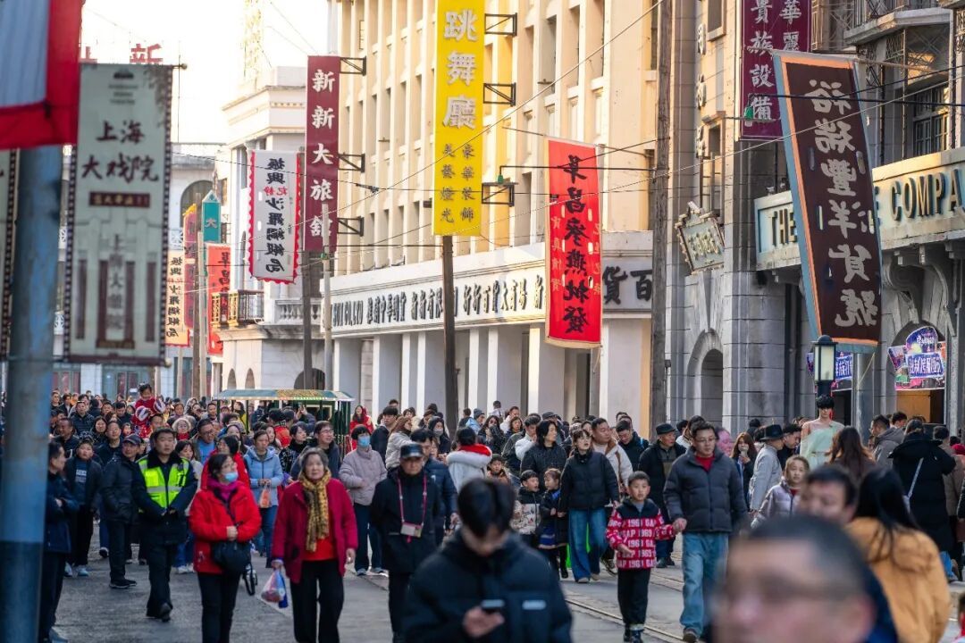 与此同时,园区以“电影+场景”重构空间体验,匠心打造“五大片场,五种人生”。游客可漫步石库门弄堂,沉浸于《追风者》中的温情过年场景;也可信步南京路,感受《功夫》世界里流淌的侠义精神。移步换景之间与剧中角色同台演绎新春剧情,更能在一街一巷中,触摸老上海的新春百态与人间烟火。