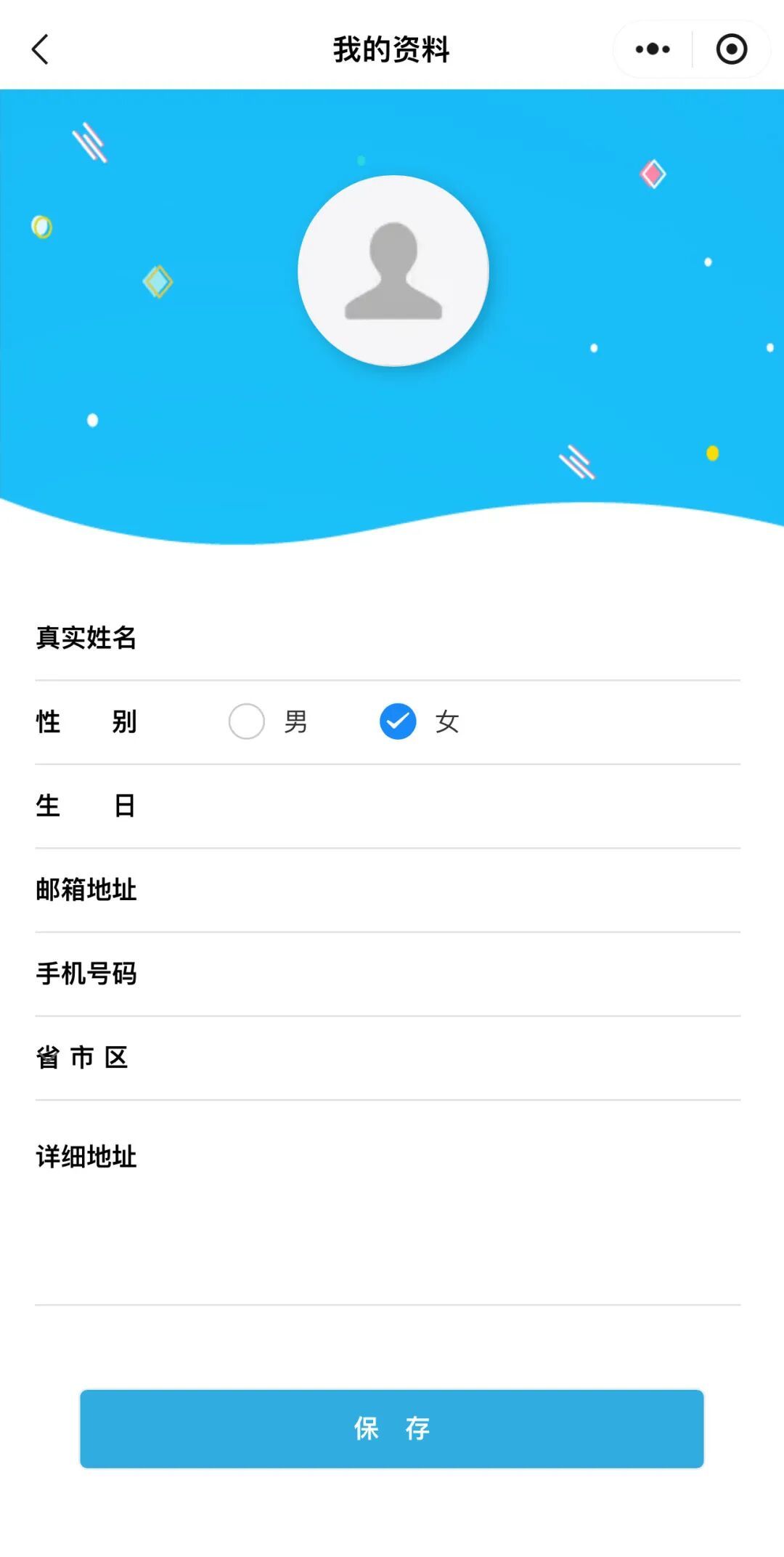 完善资料(邮箱、性别、地址)