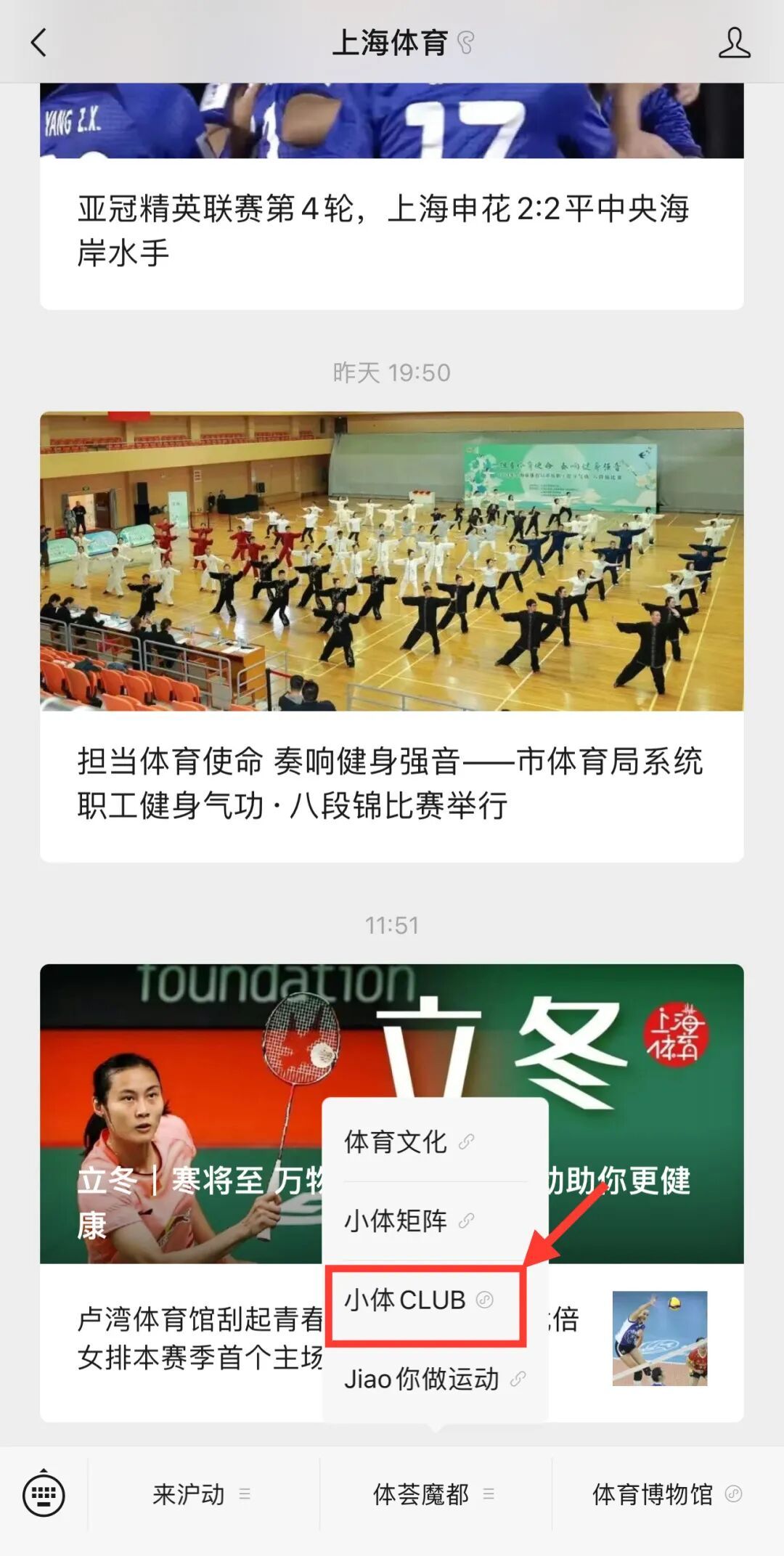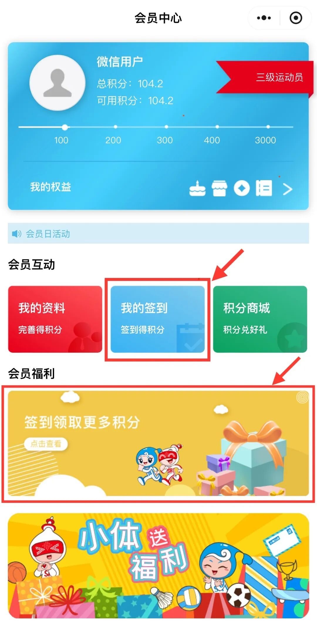 小体CLUB是为回馈上海体育粉丝的关注而建立的“粉丝之家”。粉丝进入小程序成为会员,通过每日签到获取积分,即可在积分商城兑换上海体育周边产品等,“上海体育”政务微信的各类福利活动也可在此进行报名。未来小体还将推出多项面向会员的活动,敬请期待!