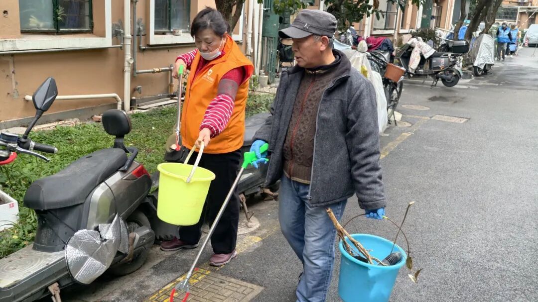 与入户排查同步展开的,是对社区环境的集中整治。长桥三村二居委联合物业和志愿者开展爱国卫生专项清洁行动,二十余人分成几组,深入绿化带、楼栋夹角等卫生死角。有人弯腰捡拾散落垃圾,有人清理枯枝落叶,还有人对公共区域进行集中整理。经过数小时忙碌,楼道清爽了,绿化带透亮了,也为春节增添了一份清朗与秩序。