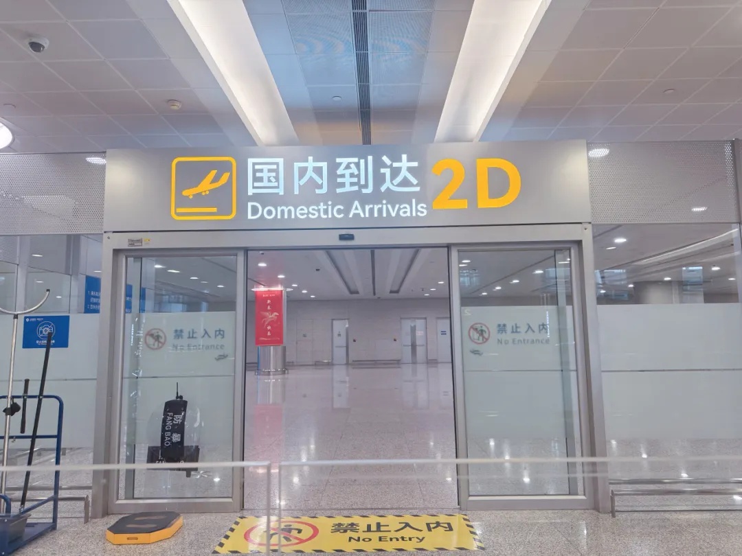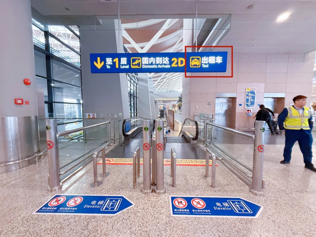 从国内到达出口离开的旅客可以通过对面的4号门抵达出租汽车上客点↓