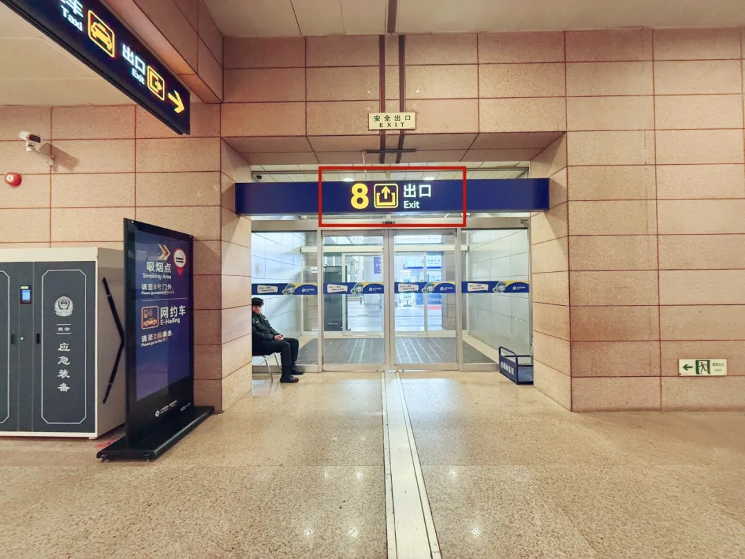 从国际、港澳台到达出口离开的旅客可以通过对面的8号门抵达地面公交候客点↓