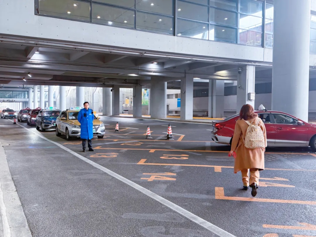 从国际、港澳台到达出口离开的旅客可以通过对面的8号门抵达出租汽车上客点↓