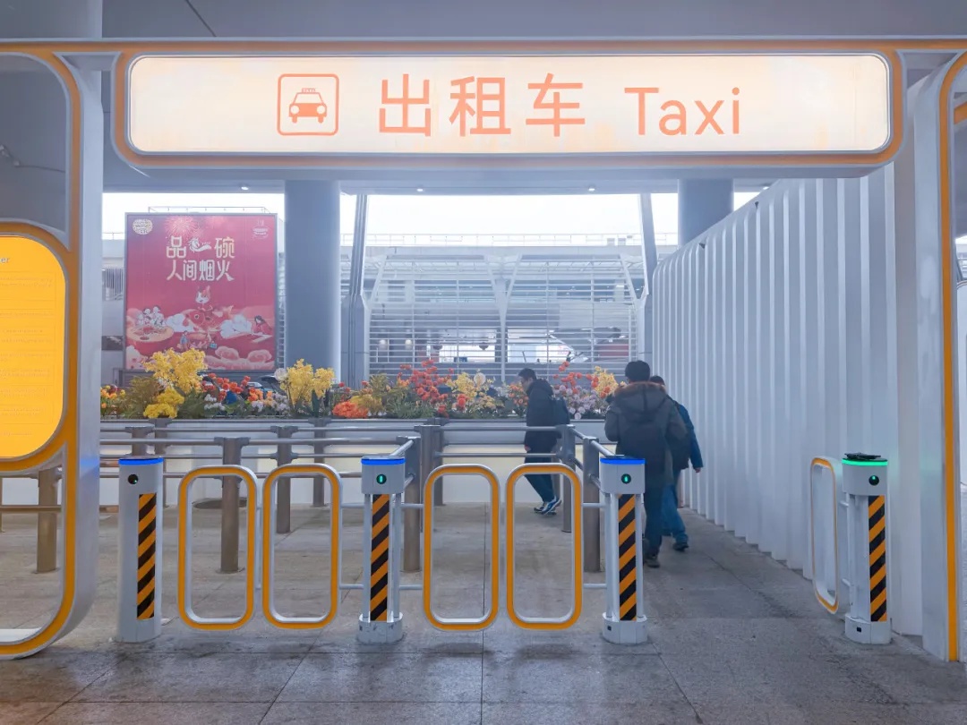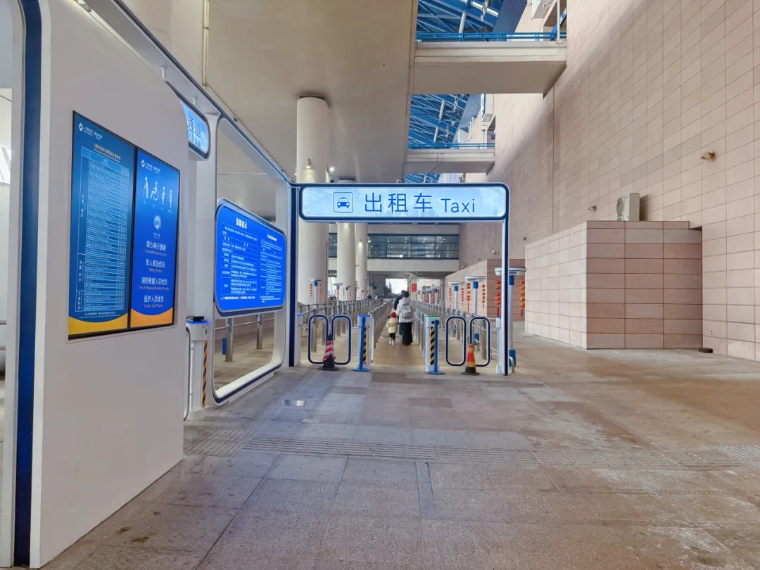 1号航站楼出租汽车上客点位于航站楼一层外。出租车上客点共配备20个发车位。