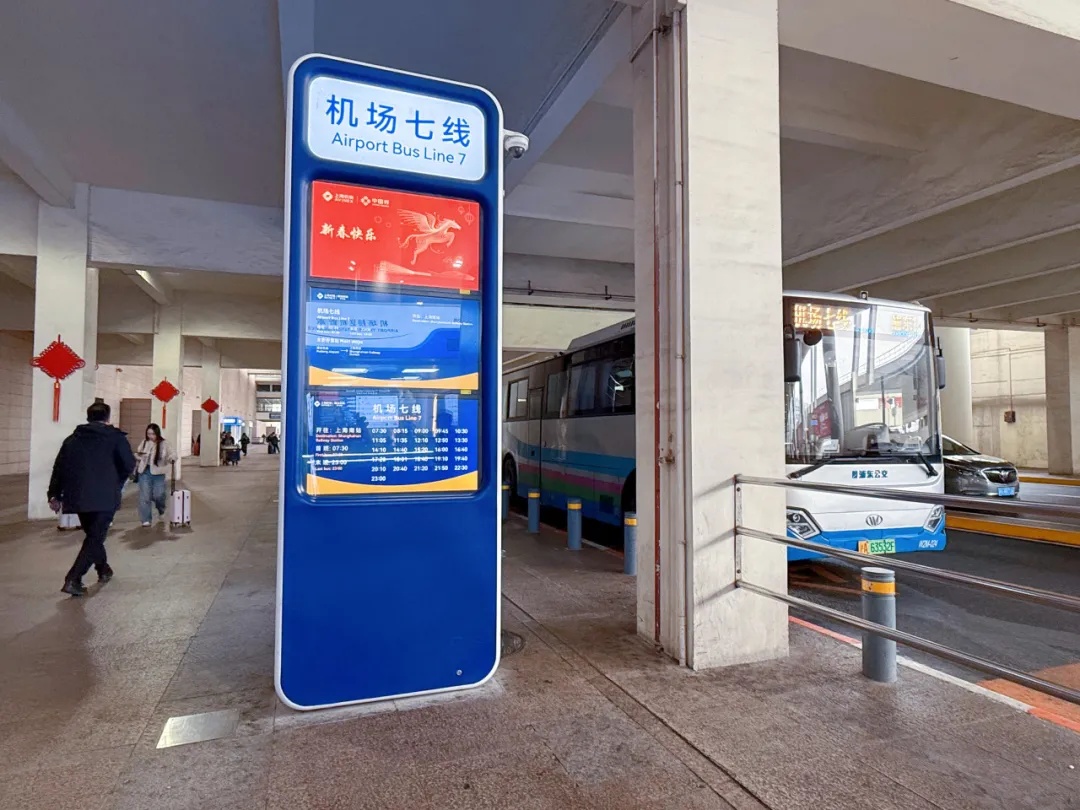 2号航站楼地面公交候客点包含机场四线、机场七线、机场八线、机场环一线、守航夜宵线(2号航站楼———虹桥枢纽东交通中心 首末班车时间:23:03——次日5:33)