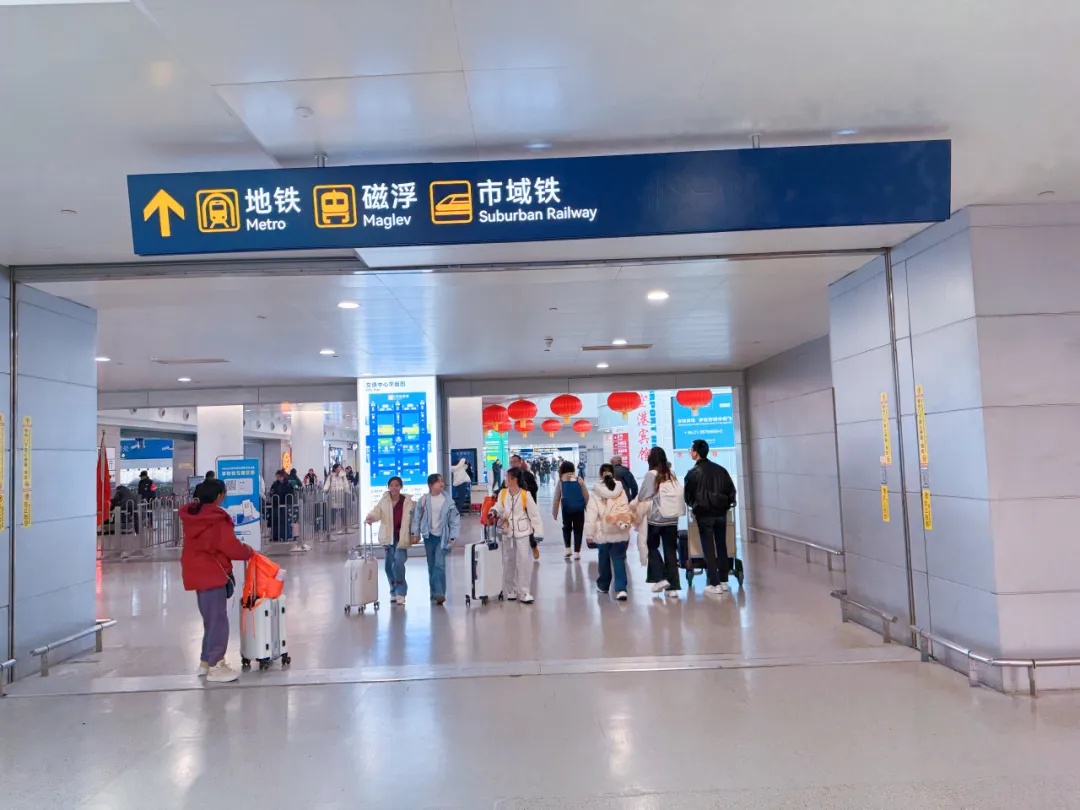 步入换乘大厅,一侧是轨道交通2号线进站口,另一侧是磁浮线进站口↓