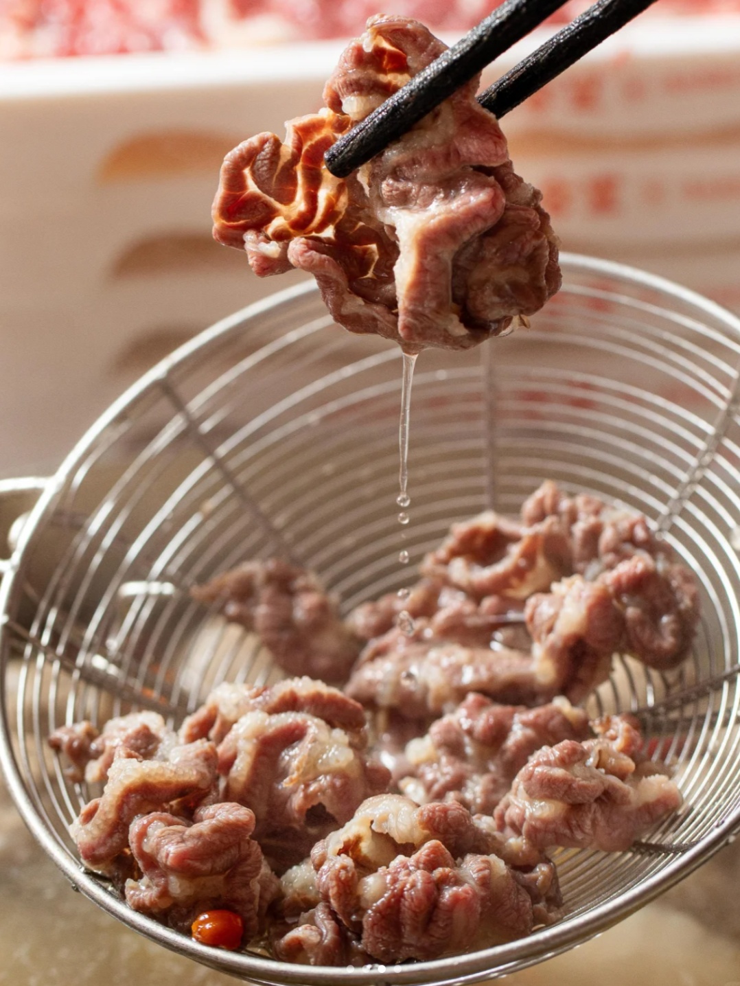 来到龙之梦的八合里,顾客们围炉涮肉,一下子便勾起了食欲。八合里的现切鲜牛肉十分有名,自家养殖场、专属屠宰场、自建车队冷链快送让肉更新鲜。吊龙的嫩、匙柄的鲜、五花趾的脆,不同的肉有不一样的口感,所有肉品都是到店后由专业师傅用非遗刀工现切。