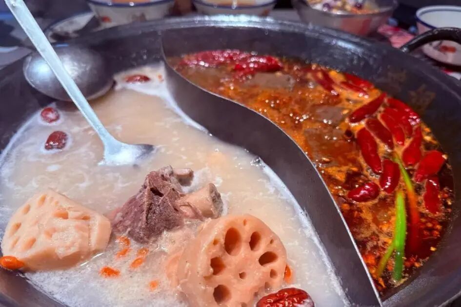 在定西路美食街的鸿姐老火锅上海旗舰店,大师傅现炒火锅底料,香气直冲脑门。鸿姐坚持传统工艺流程,确保底料的香气、口感和风味,均达到地道重庆老火锅的标准,这也成了众多食客选择鸿姐的理由。近期,店内推出了洪湖粉藕筒骨鸳鸯锅、豌豆尖等新品,双喜临门、超值分享等优惠套餐。