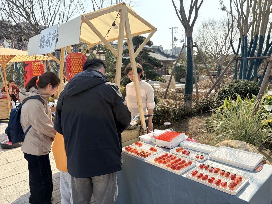 青砖黛瓦映灯火,古街新春藏雅趣。除了商圈里的热闹,嘉定的老街同样年味十足。走进印象西大街的香花集市,糕点小吃、手作饰品、国潮文创……各色摊位前人头攒动。