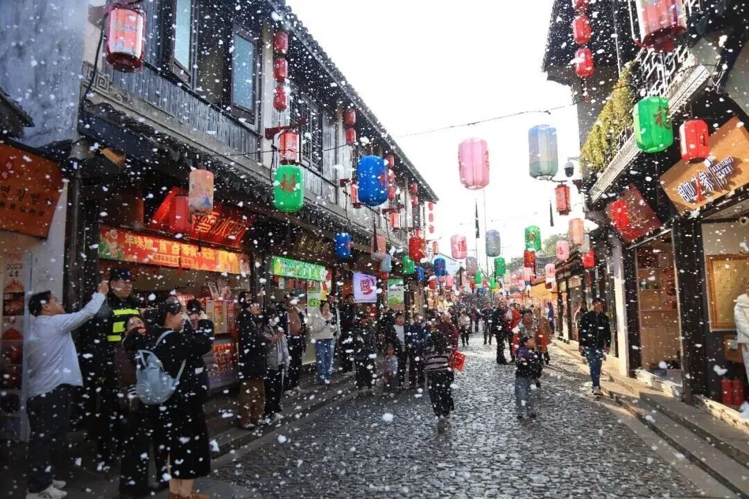 春节假日期间,南翔古镇每天还将开展5场人工造雪,让市民游客在江南水乡也能体验到“大雪纷飞”的浪漫场景,以雪景和灯彩为游客带来别样的新春韵味。