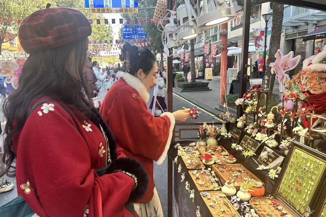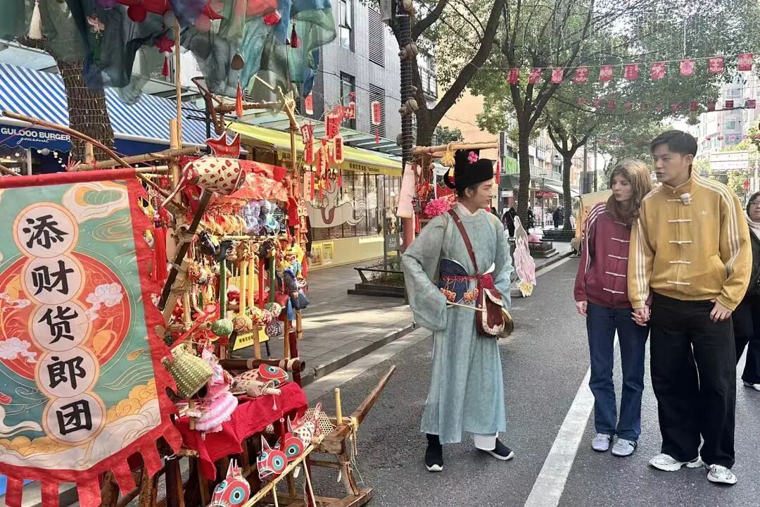 记者现场看到,这场古风集市的吸引力早已跨越了国界。在售卖手工毛毡制品的摊位前,几位外国游客对色彩鲜艳的手工编织包表现出了浓厚兴趣。摊主表示:“很多外国朋友特别喜欢这种手工的、有温度的东西,大学路本身的国际化社区氛围,让我们的生意更好做。”