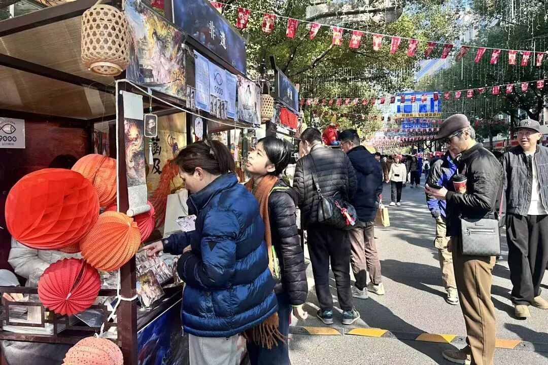 不仅如此,节日经济的溢出效应正在显现。与大学路垂直相交的伟德路“书店街”,同样因为集市的人气而受益。游客们在逛完热闹的古风市集后,转身便能躲进书店享受片刻宁静,这种“动静结合”的街区生态,正是杨浦区打造复合型文化消费场景的独特优势。