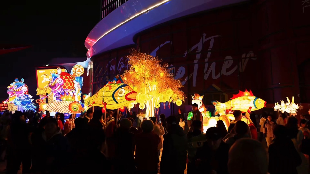 不定时上演的鱼灯巡游,引来众多市民合影互动,为夜游增添了更多惊喜和欢腾。