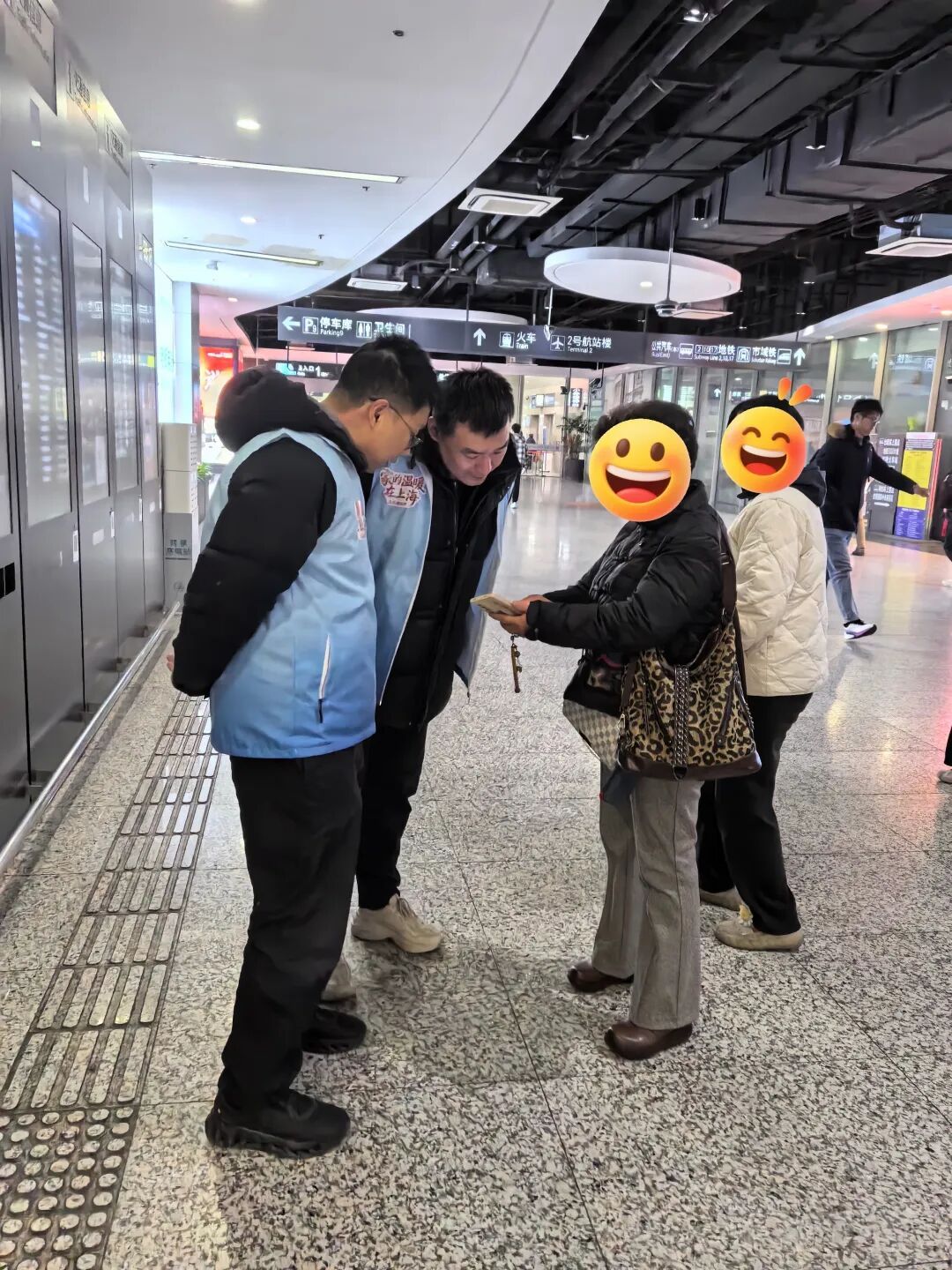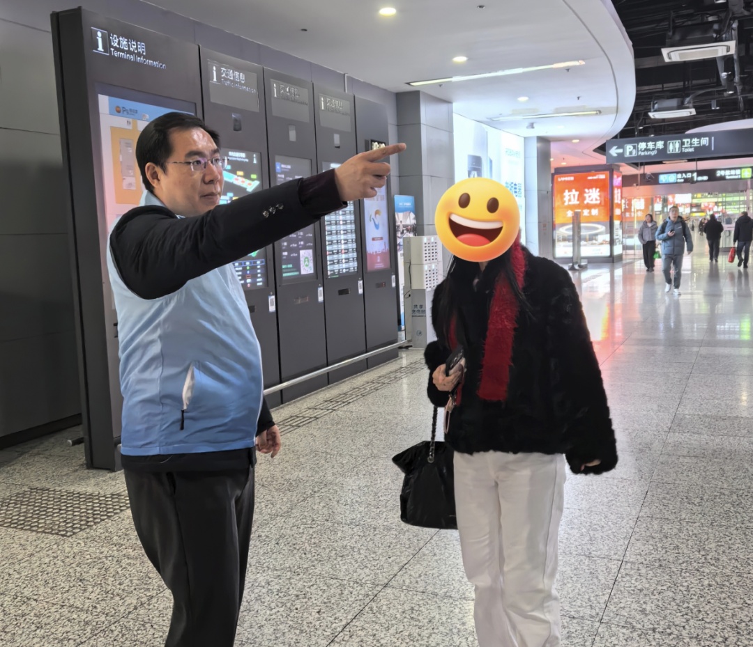 一位阿姨趁着春节假期来上海旅游,想去外滩走走看看。党群科的杨卓君了解需求后,不仅准确指引了10号线地铁的位置,还贴心告知下车站点,并推荐了豫园、南京路等附近景点,让阿姨忍不住连连道谢。