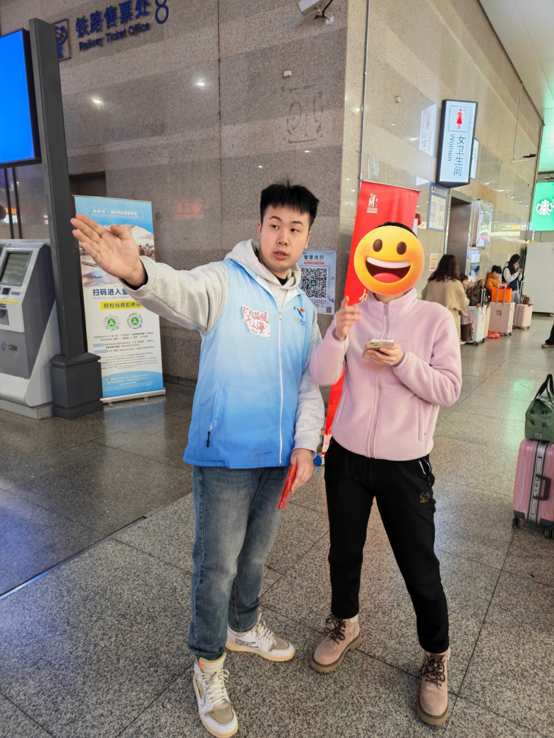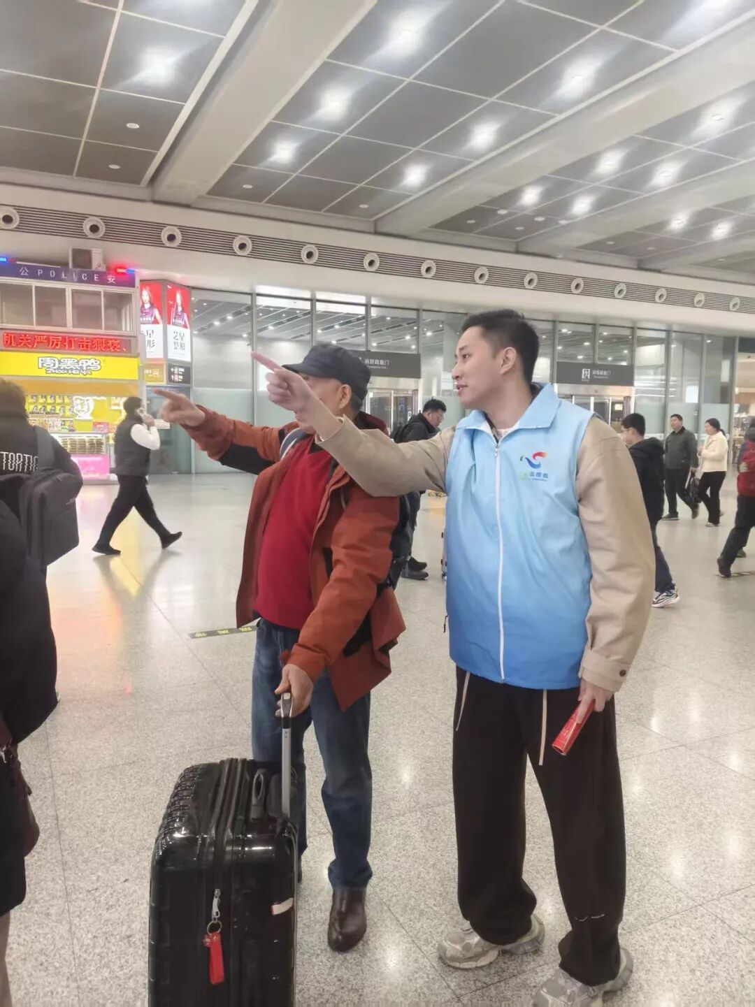 望着大爷匆匆进站的背影,他觉得,能在归乡的最后一程搭把手,让这份团圆的期待少一分周折,便是志愿服务最大的意义。