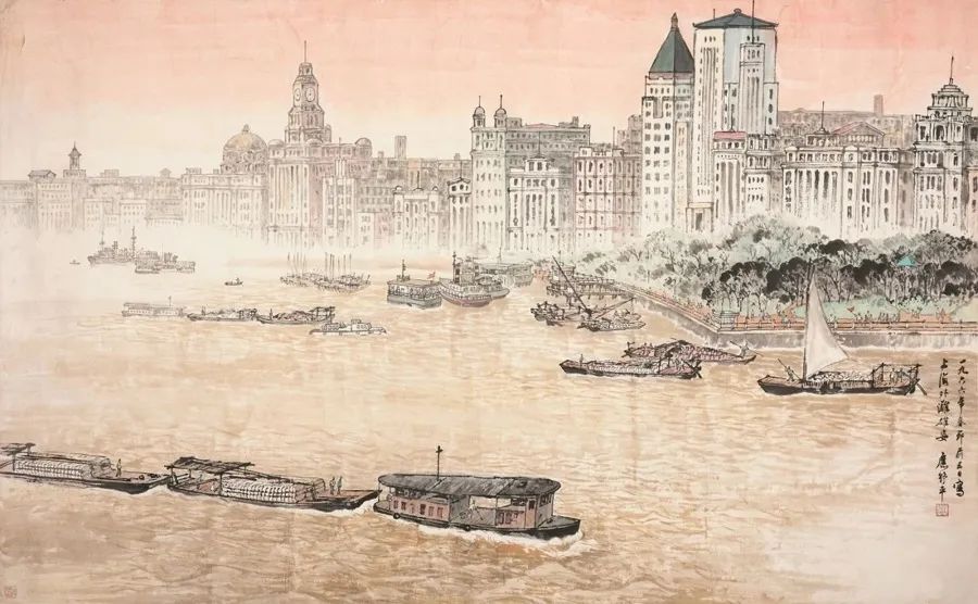 上海外滩雄姿 丙寅(1966) 117.5×191cm 上海中国画院 藏