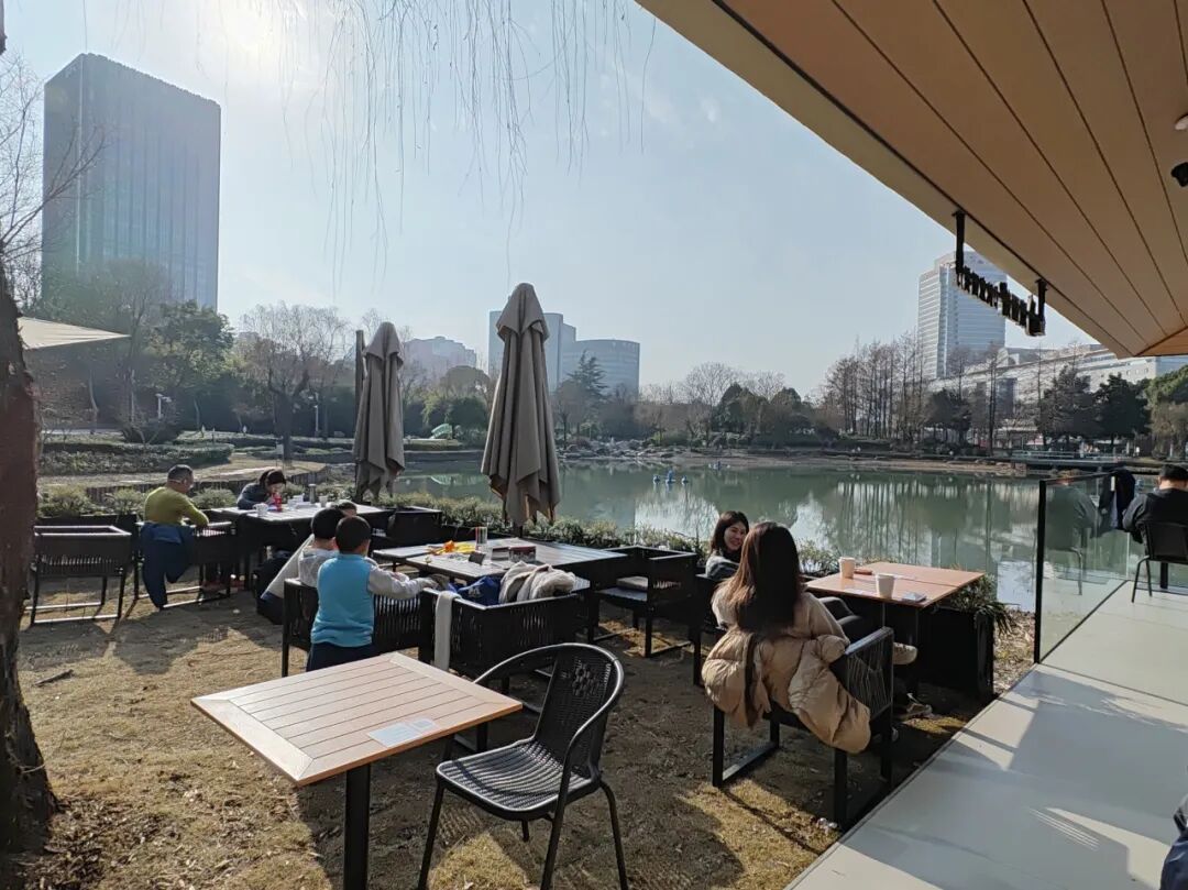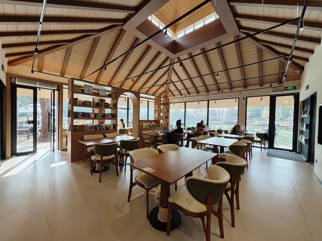 逛累了还有惊喜!临河新开的“大隐书局”,将“阅读驿站”的形式有机融入自然景观,还有美味的咖啡、意大利面可以品尝;啡桥的小白楼颜值拉满,透明玻璃窗能把全园美景尽收眼底,喝杯咖啡看风景,十分惬意;“溢咖啡·公益馆”藏着温柔,喝东西还能助力助老公益,太有意义啦!