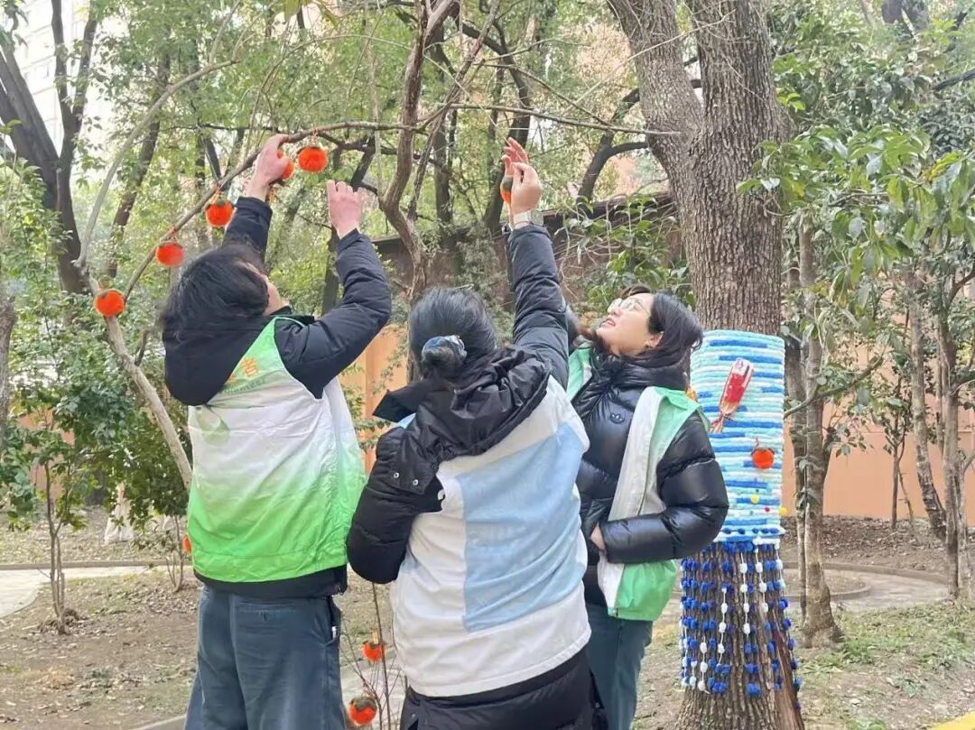 这场大树换装活动,藏着邻里间的默契与温情。活动中,男女老少分工协作,梳理材料、缠绕树干、点缀装饰,没有生疏的隔阂,只有互助的笑意。在大家的巧手下,原本素雅的大树变得色彩斑斓、暖意融融,不仅扮靓了社区环境,更拉近了邻里距离,让文明实践的温度渗透到社区的每一个角落。