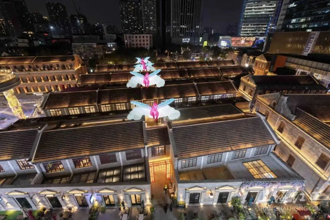 更让人期待的是,外摆或将从平面拓展迈向立体升级,届时游客便可以在外摆区域一边就餐,一边欣赏百年石库门屋顶酷炫的灯光艺术装置,感受光影与艺术的共鸣。