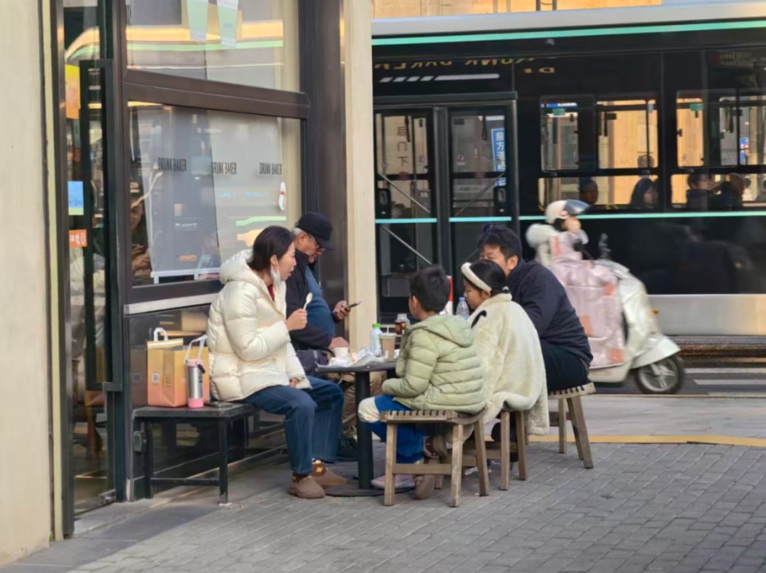 今年,滨港商业中心今潮8弄正式获授虹口首个“一站式文旅商体展示范基地”。而新春文商旅体展深度融合的一站式玩法,也形成“逛、赏、食、购、玩”的新春体验闭环。春节期间,今潮8弄的100余场年味活动为外摆带来稳定客流,沿街外摆区则成为这些活动的“配套客厅”,游客逛累了可在此休息,品尝美食茶饮,感受“烟火味道”与“海派文化”的双重熏陶。