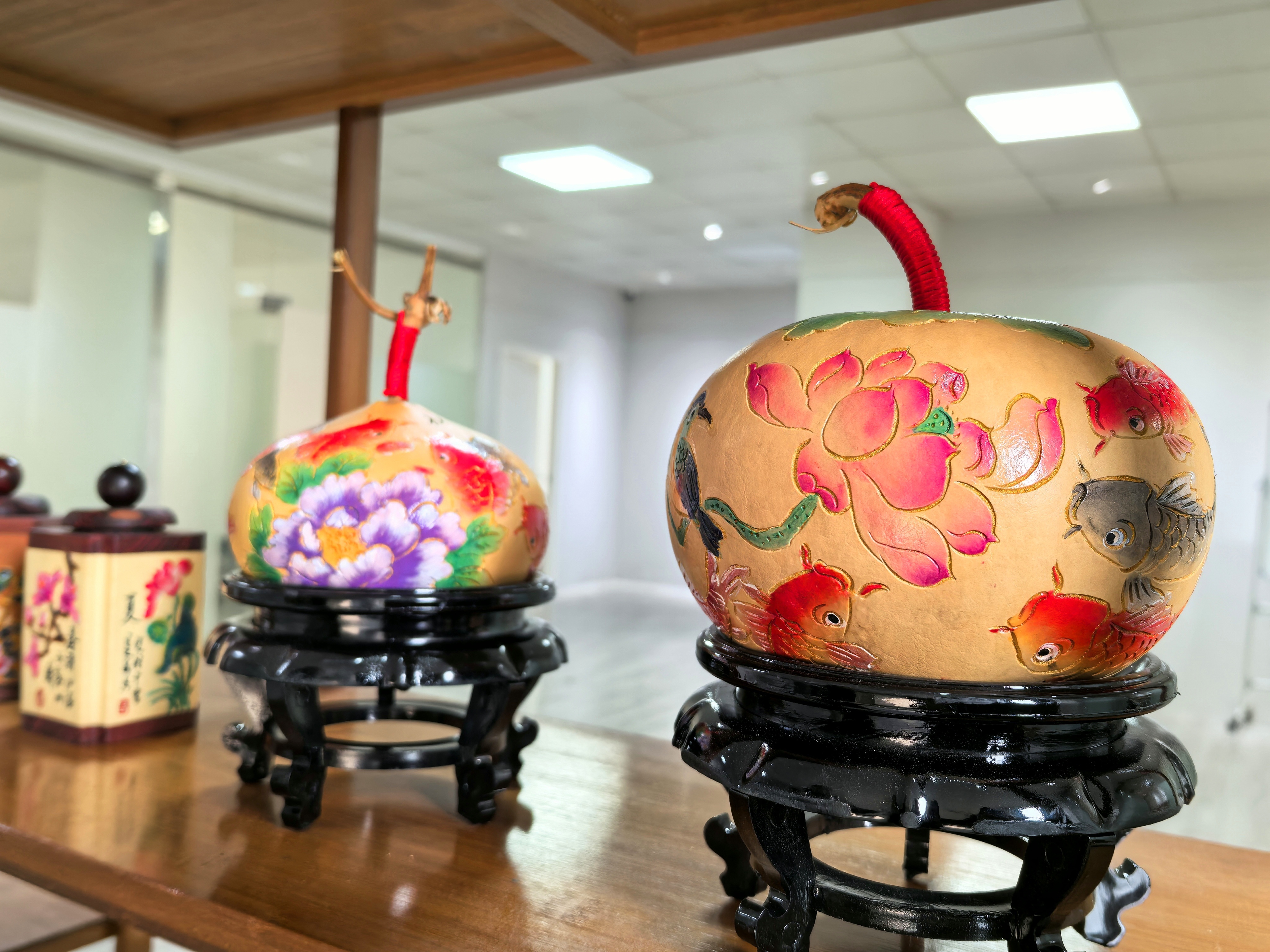 展厅里,传统国风、卡通造型、新国潮等各类葫芦文创样品琳琅满目,小到挂件手串,大到铁艺摆件,件件都被赋予了文化内涵。“长在藤上的葫芦不稀奇,怎么让每只葫芦讲好中国故事,才是我们努力的方向。”张亚军说,要想让葫芦变得不一般,除了做好后期工艺,还要参与葫芦培育研发。目前,公司已与汶上县葫芦基地合作,打造专属种植基地,从源头把控葫芦品质。