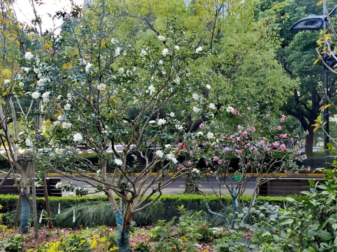 从豫园中那株百年的“白芙蓉”,到散落于城市各处的姹紫嫣红,茶梅正以她独特的方式,为上海的冬季增添着温暖与色彩。