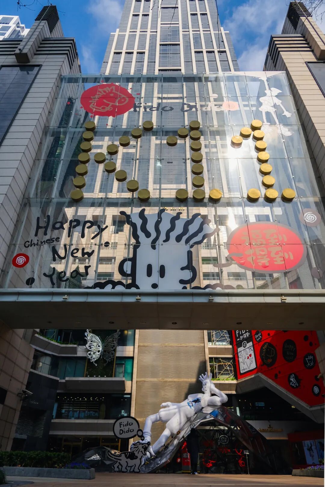 往南几步之遥,K11艺术购物中心则是另一番年轻活泼的景象。商场广场上,高达数米的FIDO DIDO气模雕塑成为年轻人的打卡焦点,这个诞生于1985年的经典IP以标志性的随性涂鸦造型,传递着“Dare to Be Different”的潮流态度,这也是FIDO DIDO IP公益展览的一部分。