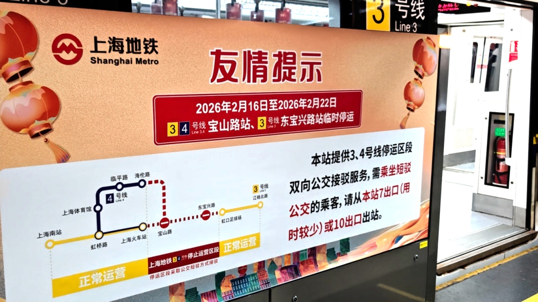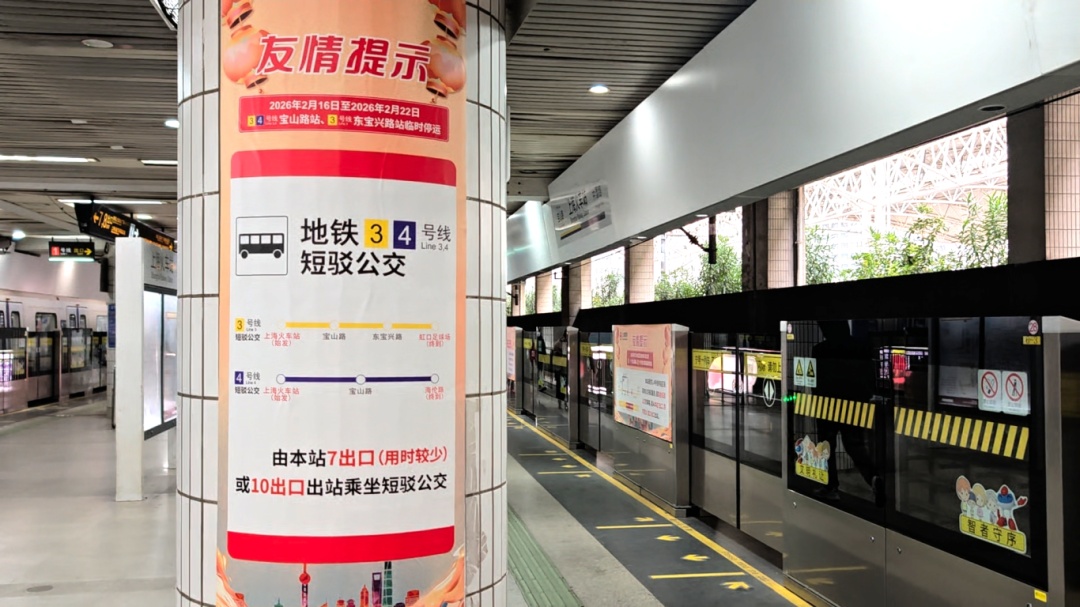 为提升线路运能,从2月16日起至2月22日,地铁3、4号线宝山路站,地铁3号线东宝兴路站停运施工,其间3号线实行分段运营、4号线调整为“C字型交路”。涉及到的停运区段将通过公交短驳保障市民出行,为此,轨交公安与相关部门做好疏导保障等相关工作,全力确保客流秩序安全平稳。