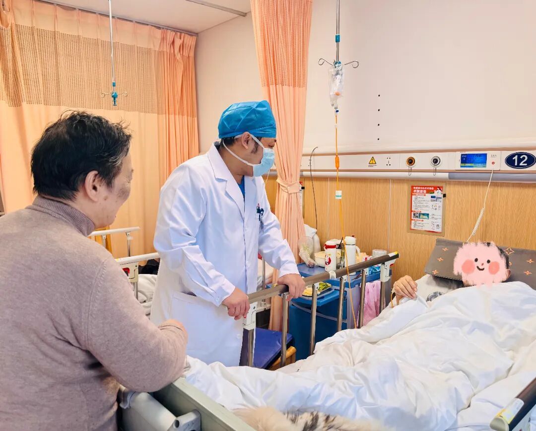 半个小时后,手术结束。裴轶飞换下手术服,又匆匆忙忙赶往病房。春节期间,血管病科病房内,仍有一些症状严重或急症的患者。裴轶飞带领团队成员,逐一查看患者术后情况,并叮嘱他们出院后的注意事项。