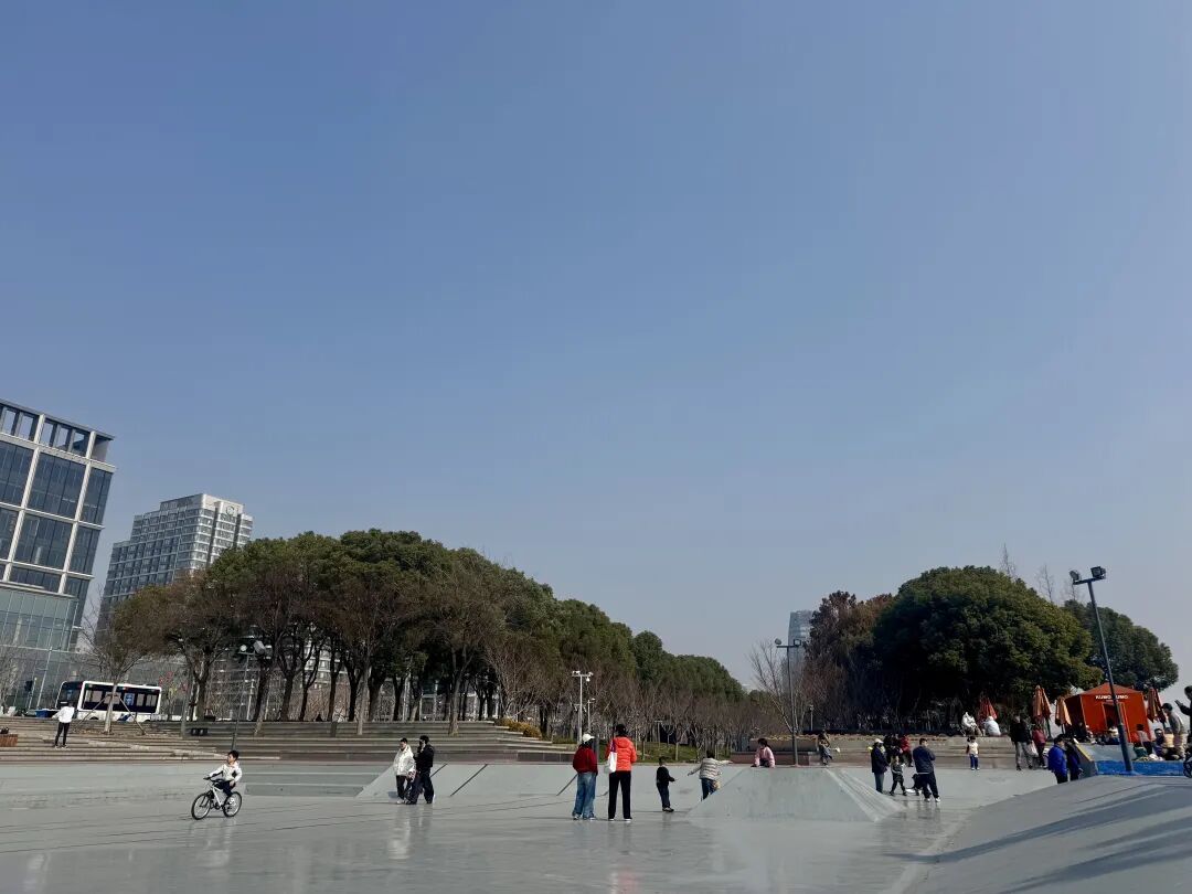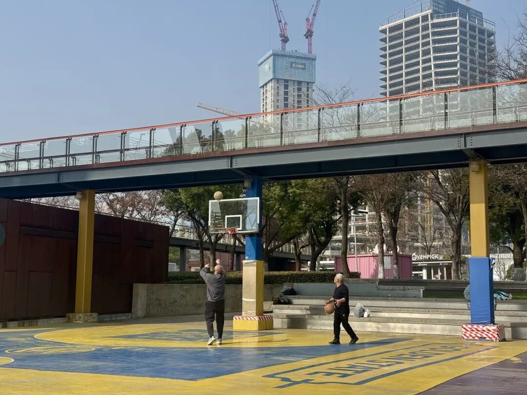 不仅是跑步,西岸的户外运动基因在节日里愈发凸显。滑板公园内,孩童们在弧面上腾空翻转,滑轮与地面摩擦出青春的节拍;篮球场上,亦有老年朋友运动的身影,呼喊声与江涛融为一体。这片曾是“铁、煤、砂、油”喧嚣的工业岸线,如今已成市民释放多巴胺的“城市运动场”。