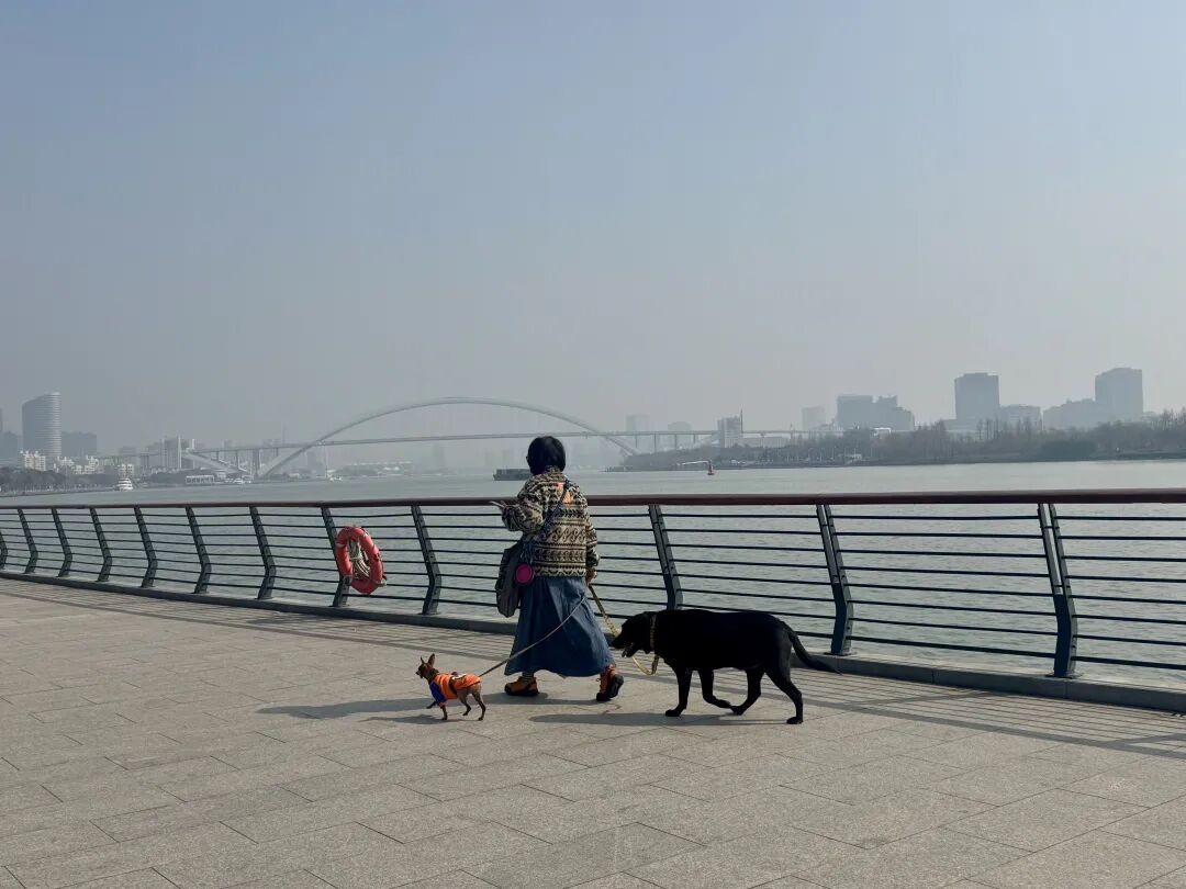 午后的阳光则变得慵懒,西岸梦中心沿线的草坡上,“长”满了享受日光的人们。银发族坐在长椅上,闲聊着家长里短;“毛孩子”们无疑是这片空间最欢乐的精灵,主人们举着手机,记录下这治愈的瞬间。