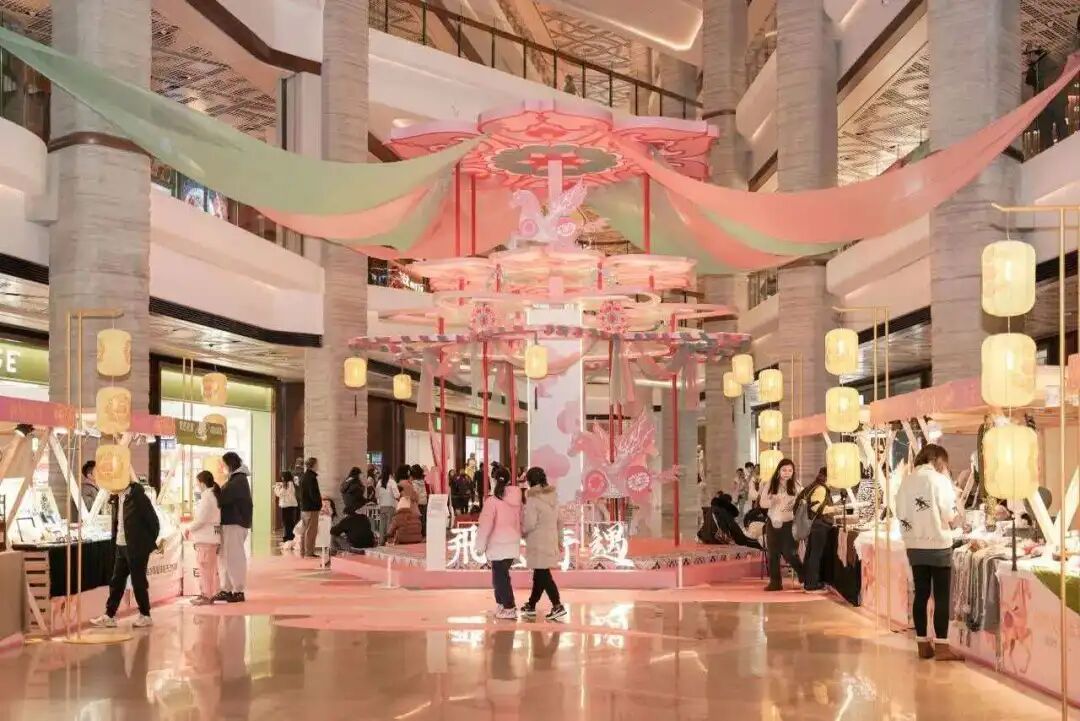 大洋晶典·走进天安千树L层中庭,复刻莫高窟藻井纹样的中心装置格外醒目,翼马造型搭配飞天纱幔,简单大气又不失年味,不少市民驻足拍照留念。大洋晶典·天安千树正在开展“敦煌文化市集·飞天奇遇”活动,以特色摊位集结敦煌好物,为市民打造一场可感、可触、可藏的文化盛宴。