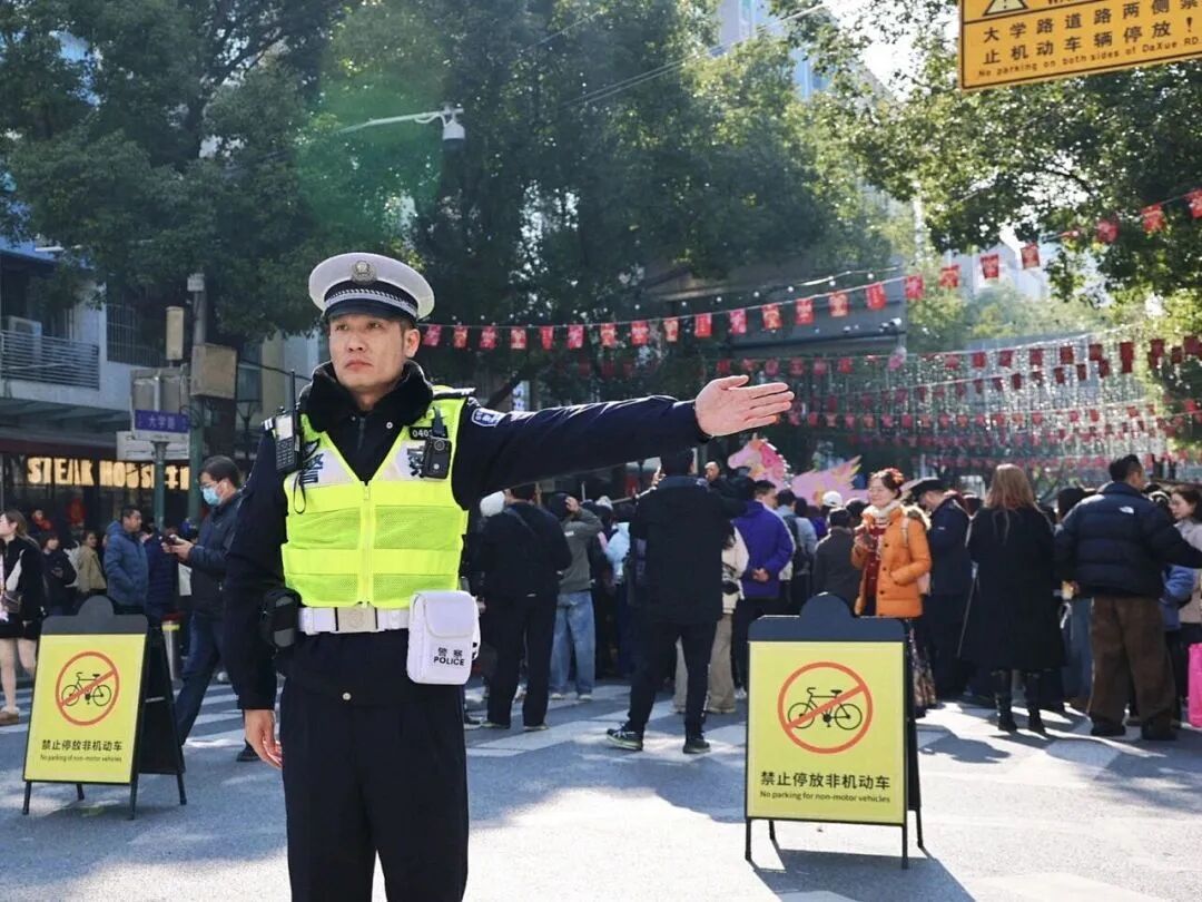 “此处停车位已经饱和,您可以前往伟康路或P2地下停车场进行停放,步行3分钟就可到达!”与此同时,在大学路限时步行街周边,杨浦交警开辟多处临时停车点位,加强警力部署,实时根据道路情况进行动态调整和引导,方便市民驾车出游,全力守护安畅舒心的春节出行路。