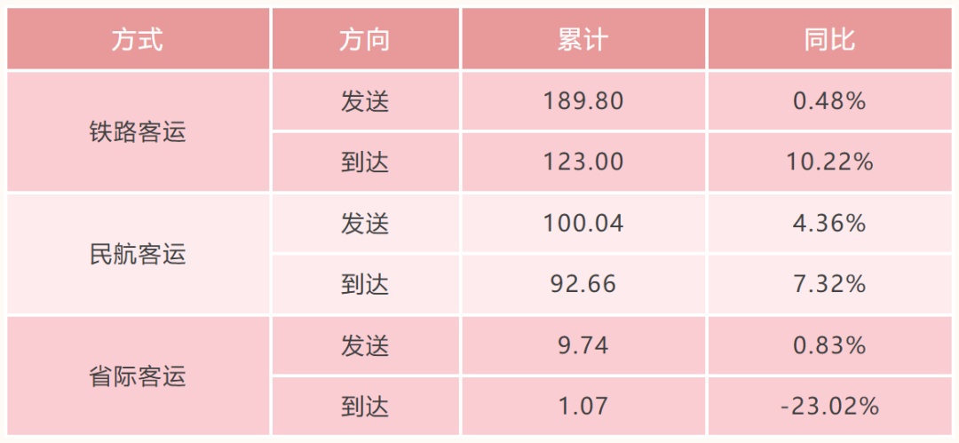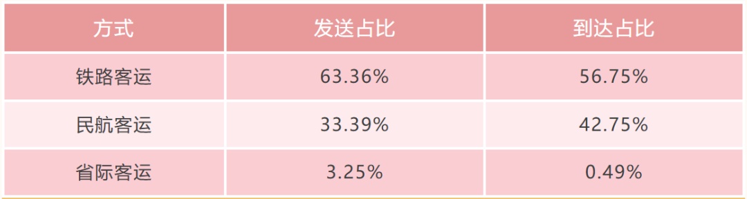 各种对外交通方式发送、到达占比如下: