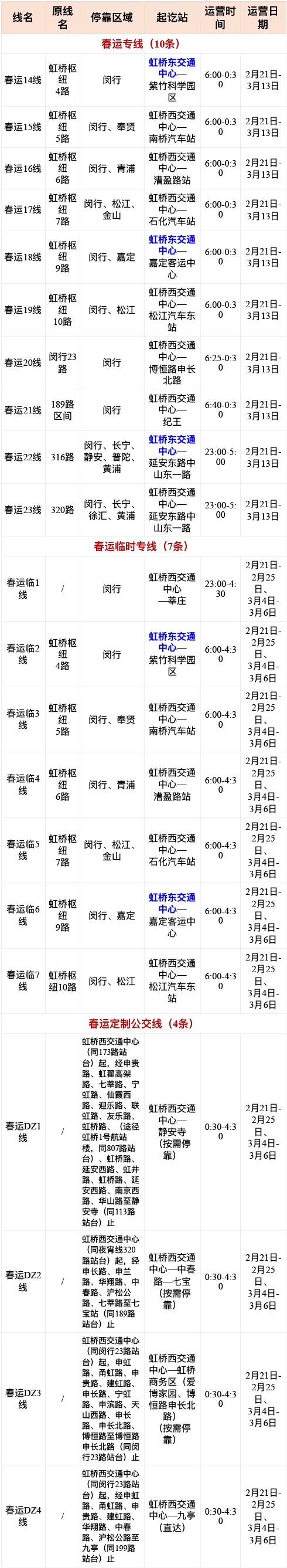 市交通委介绍,为全力做好春运期间地面公交的保障工作,给乘客营造“安全、快捷、有序、舒心”的春运出行环境,本市公交行业开辟了30条春运专线、9条春运临时专线以及4条定制公交线,确保地面公交与机场、火车站、码头、轨交的有效衔接。详见↓