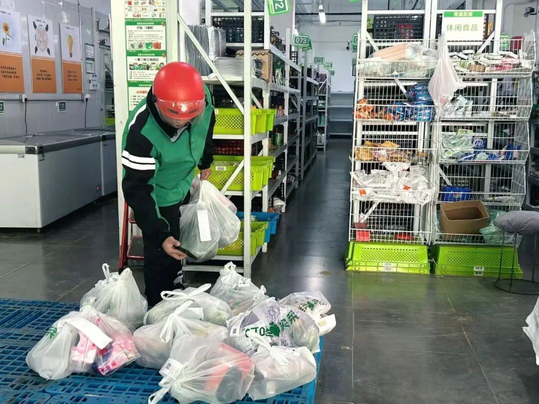 年货采购高峰期间,为保证配送效率,线上平台进一步优化运力储备与配送网络。以广富林站点为例,不仅留守了近70%的一线员工,还通过科学排班、错峰休假等方式,保证配送运力稳定,从而满足消费者一站式采办年货需求。