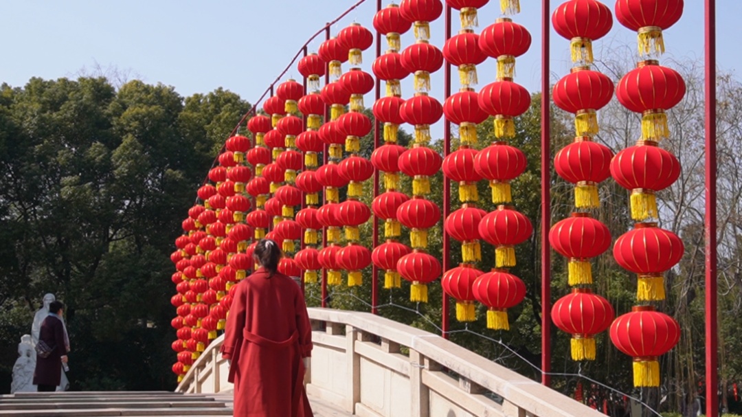 一踏入如皋的东大街和水绘园,年味直接拉满。青砖黛瓦的老建筑间,挂满了红彤彤的灯笼,风一吹轻轻晃动,过年氛围十足。