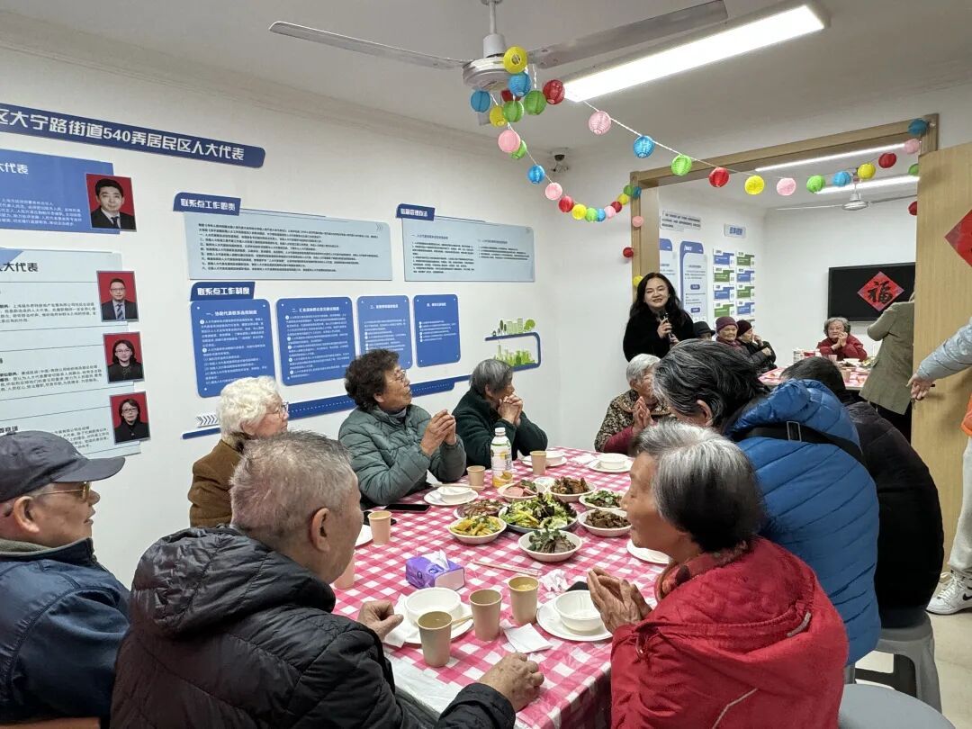 这份暖心的“年夜饭之约”,已然走过整整十年。2017年,由大宁路540弄居民区党总支发起,区人大代表周莉主动牵头,每年春节前夕联合社区志愿者,为小区高龄独居老人精心筹备这场团圆盛宴,把社区的关怀与温暖,实实在在送到老人们的心坎上。