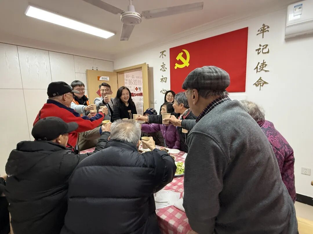 老人们拿起筷子品尝佳肴,连连夸赞,居委工作人员和老伙伴志愿者们忙前忙后,为独居老人们传菜、夹菜、倒热饮,轻声询问身体状况,叮嘱冬日保暖。一句句贴心的问候,一个个温暖的举动,让老人们在欢声笑语中,真切感受到家一般的温暖与团圆。